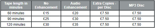 When we have copied the audio, you have the option of having the recording enhanced to reduce or remove the background static hiss that is prevalent on cassette tapes, and any unwanted pops and crackles that can also intrude into the recordings.