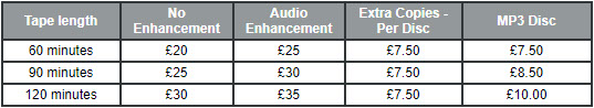 Once we have transferred your footage onto we are able to make a high quality MP3 copy if required.
